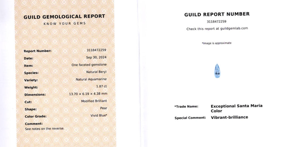 - Fine elongated pear shape aquamarine weighing 1.87cts